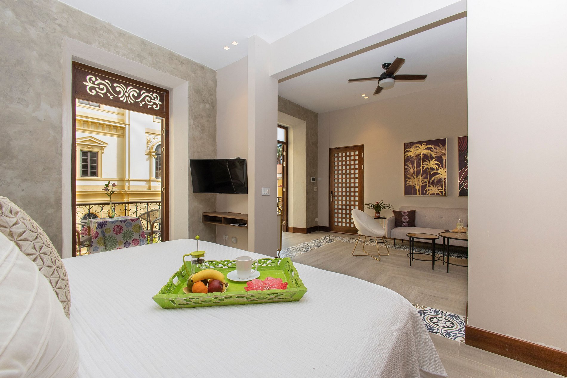 In this aparta suite, the charm of romance blends with elegance. All its spaces are spacious and fresh. Its original architecture has been preserved, highlighting the calicanto and its high ceilings, ensuring a cool atmosphere. Its charming balcony offers a view of the majestic neoclassical architecture of the National Theatre and the Ministry of Government.