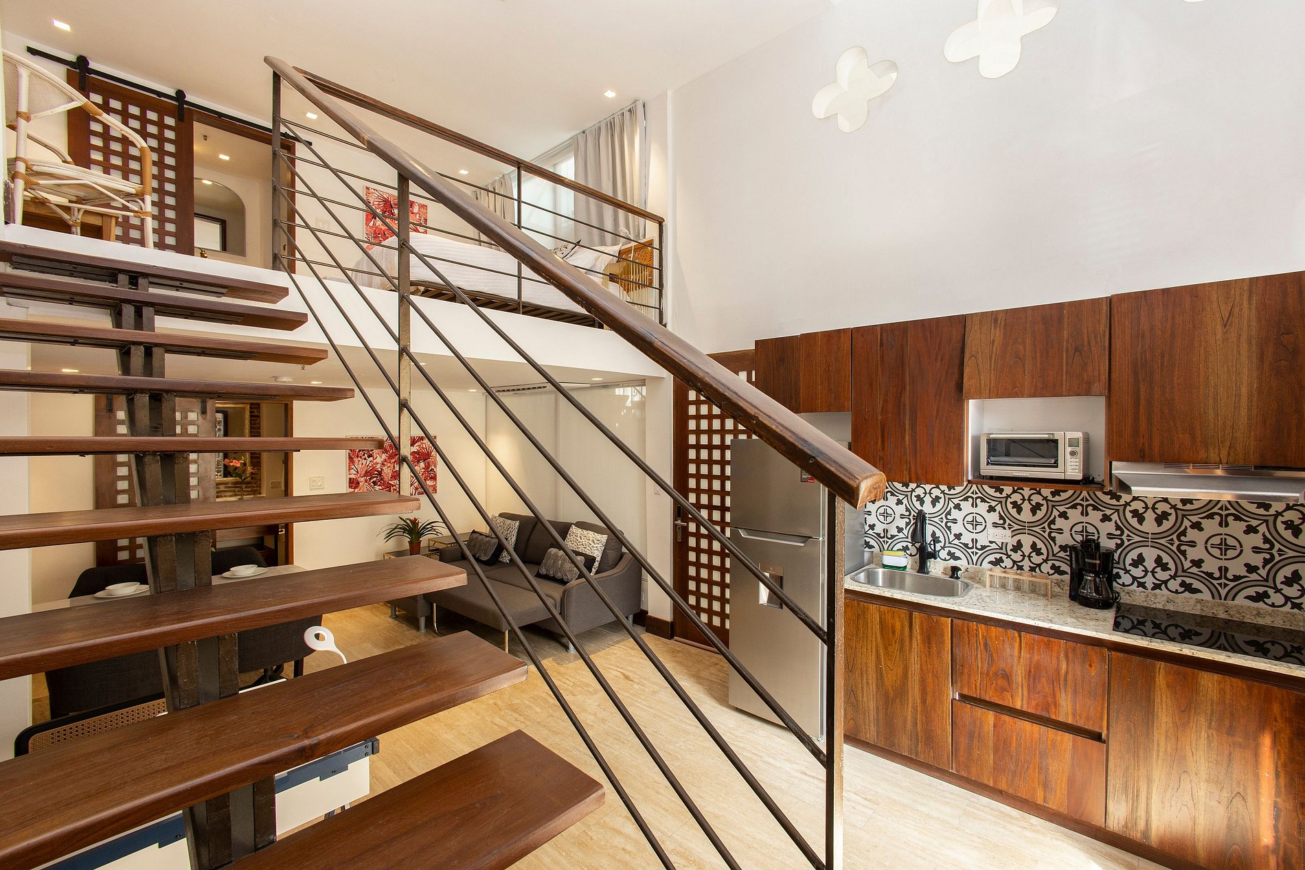Este apartamento minimalista y moderno es el refugio perfecto para grupos que buscan comodidad y estilo, sin perder la esencia de la magia del Casco Histórico. Con un diseño práctico y modular, cuenta con dos habitaciones loft, cada una con su propio baño, ofreciendo privacidad y confort. Los espacios están optimizados para proporcionar amplitud y funcionalidad, mientras que su ambiente silencioso y jovial invita a la relajación. Es el lugar ideal para compartir momentos especiales, rodeados por la historia y el encanto único del Casco Histórico. Su encantador balcón es testigo de la majestuosidad de la arquitectura neorrenacentista del teatro nacional y del ministerio del gobierno.